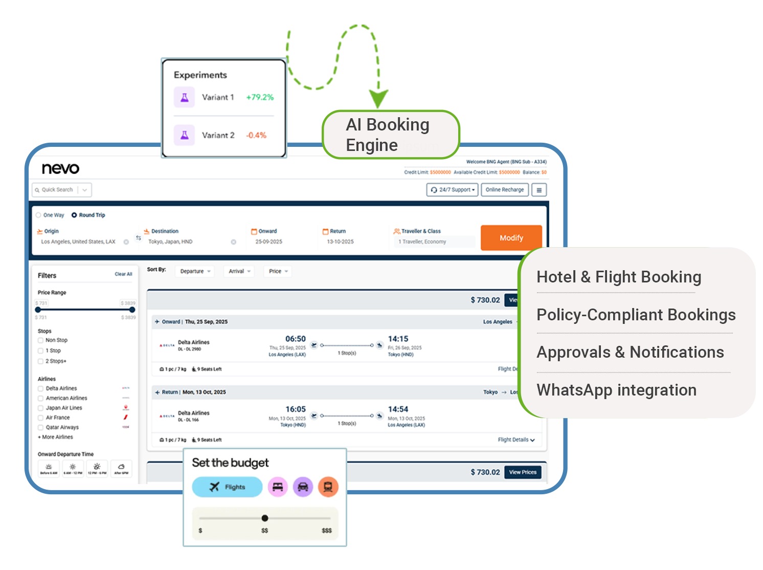 Nevo's budget tracking keeps your corporate travel expenses in check.